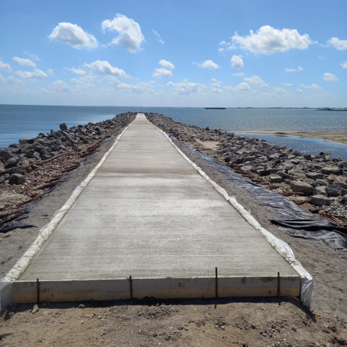 Op de strekdammen worden door BKB Infra betonnen paden aangebracht, die robuust genoeg zijn om de invloeden van de omgeving in alle jaargetijden te weerstaan. Tevens bieden de paden in de nabije toekomst een mooi uitzicht aan fietsers en wandelaars.